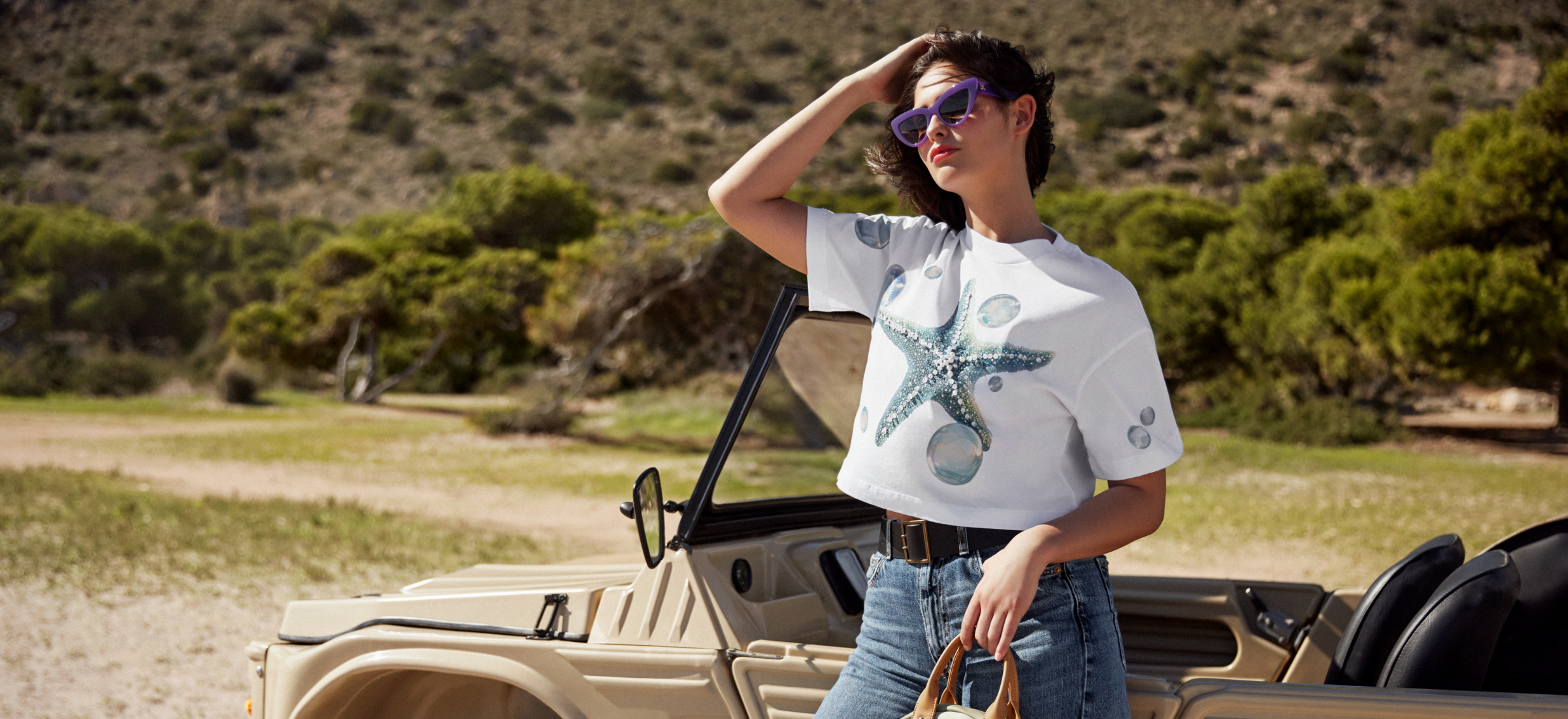 Cada colección nace de una idea poderosa y se transforma en un universo visual donde moda, actitud y Mediterráneo se mezclan sin pedir permiso. La luz, los contrastes, la textura, la mujer que habita la escena… todo construye narrativa.